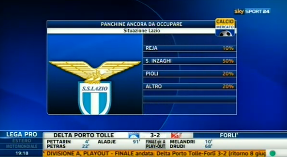 ROMA - Ai microfoni di Sky Sport 24, Manuele Baiocchini ha parlato della polemica inerente alle dichiarazioni di Edoardo Reja a "Il Messaggero", poi ritrattate sul sito ufficiale della società: "Passa in pole Simone Inzaghi. C'è questa intervista smentita di Reja a cui lasciamo un 10% solo perché potrebbe svoltare…