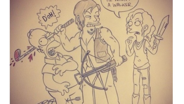 Nel disegno firmato da Eric Keys vediamo Daryl uccidere Homer Simpson, forse avendolo scambiato per uno zombie (il colore giallo della pelle è ingannevole). E' morto Homer Simpson ed il responsabile di questa follia ha aggiunto la solita dose di simpatia ed ironia in una scena così forte: la bionda Beth Greene (interpretata da Emily Kinney) fa notare all'arciere Daryl di aver fatto un grosso errore e il povero Homer reagisce con la sua esclamazione più nota "D'oh!".