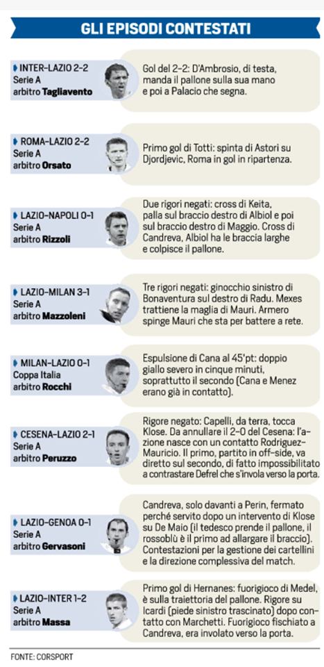 Ricostruzione. E’ quello che Lotito, ringhiando, avrebbe urlato nei corridoi dello stadio Olimpico a notte fonda, prima incrociando Fassone, dirigente dell’Inter, e poi affrontando Massa e la terna arbitrale. “Vi faccio smettere” avrebbe detto. “Massa va a casa” l’altra versione di cronaca, più o meno equivalente, emersa a caldo. Nessun chiarimento, l’arbitro avrebbe promesso di scrivere tutto nel referto da consegnare al giudice sportivo. Alcuni testimoni, presenti nel garage dell’Olimpico, hanno ascoltato prima di vedere Fassone e Lotito che si abbracciavano nel capannello formato con Tare e Ausilio. Tra Lazio e Inter non ci sono state tensioni, con l’arbitro sì. Lotito ha smentito con decisione, non parla, non rilascia dichiarazioni da mesi. Ieri si è aggiunto Tare, intervendo a “La politica nel pallone” su Gr Parlamento. «Alla fine della partita Lotito era furioso, ma non ha fatto alcun commento sull’arbitro Massa». Restano il danno e un arbitraggio vergognoso a quattro giornate dal traguardo. Servirebbero arbitri esperti, abituati a gestire partite così importanti, ecco cosa ha chiesto la Lazio. «Gli episodi sono molto chiari. Capita a tutti di sbagliare ma mi piacerebbe sentire una volta un arbitro ammetterlo» ha spiegato Tare.