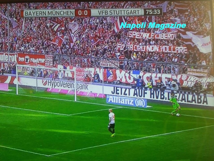 Durante Bayer Monaco-Stoccardo, nella curva di casa, sono stati esposti i seguenti striscioni: "Speziale libero" e "Forza Ciro non mollare". Nella segnalazione, fatta dal tifoso del Napoli, Mario, a "Napoli Magazine", la seguente domanda: "Ora chiuderanno lo stadio di Monaco?". (NapoliMagazine)