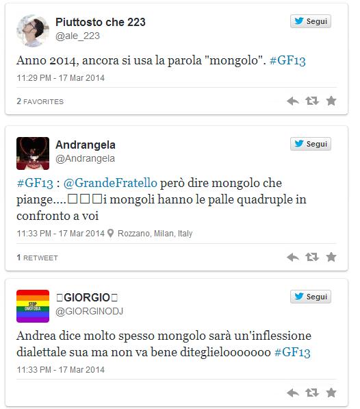 Non c’è alcun riferimento testuale all’impero d’Oriente che conquisto mezzo mondo intorno al XIII secolo o alla popolazione dell’Asia a cavallo tra Cina e Russia. Molti telespettatori hanno colto immediatamente il chiaro riferimento all’espressione, arcaica, scolastica, triviale e dispregiativa rivolta alle persone affette da Sindrome di Down. Una formula usata tra amici al bar e, forse, televisivamente poco tollerabile: