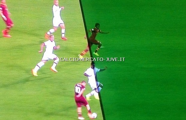 Tutti si aspettavano un Milan grintoso e assetato di punti questa sera all’Olimpico, e invece i ragazzi di Seedorf hanno recitato al meglio il ruolo di vittime sacrificali, assistendo inermi alla prestazione comunque eccellente della formazione capitolina. La partita viene sbloccata al 43esimo minuto da Pjanic, che approfitta della dormita generale della retroguardia meneghina per entrare in area e battere Abbiati con un destro preciso, mentre nella ripresa arriva il raddoppio giallorosso ad opera di Gervinho. Sul gol dell’attaccante ivoriano, però, pesa la posizione di fuorigioco non sanzionata dalla terna arbitrale: al momento del tiro di Totti, infatti, Gervinho è in posizione irregolare, e dunue il suo tap-in che ribadisce in rete la conclusione respinta da Abbiati è assolutamente irregolare (come si può notare nella foto sopra).
