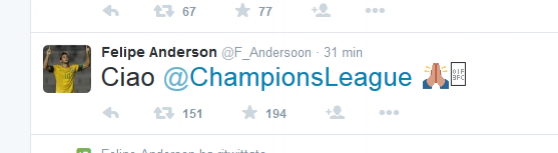 FLASH - E' una pioggia di tweet biancocelesti. "Ciao Champions!", saluta Anderson dopo le lacrime post-match. "Terzo posto, andiamo in Champions", sorride invece De Vrij su Facebook. "Siamo in Champions, grazie a Dio. Una stagione meravigliosa, grazie a tutti i tifosi" esulta poi Mauricio. La goduria, è appena iniziata.