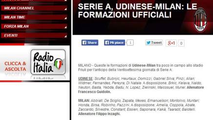 Seedorf già fuori? Forse è troppo presto. Anzi, di certo è troppo presto, però il Milan sbaglia e sul sito ufficiale - nella pagina della formazione che scenderà in campo tra pochi minuti al Friuli per affrontare l'Udinese, mette in panchina Filippo Inzaghi, e non l'olandese... Si tratta ovviamente di…