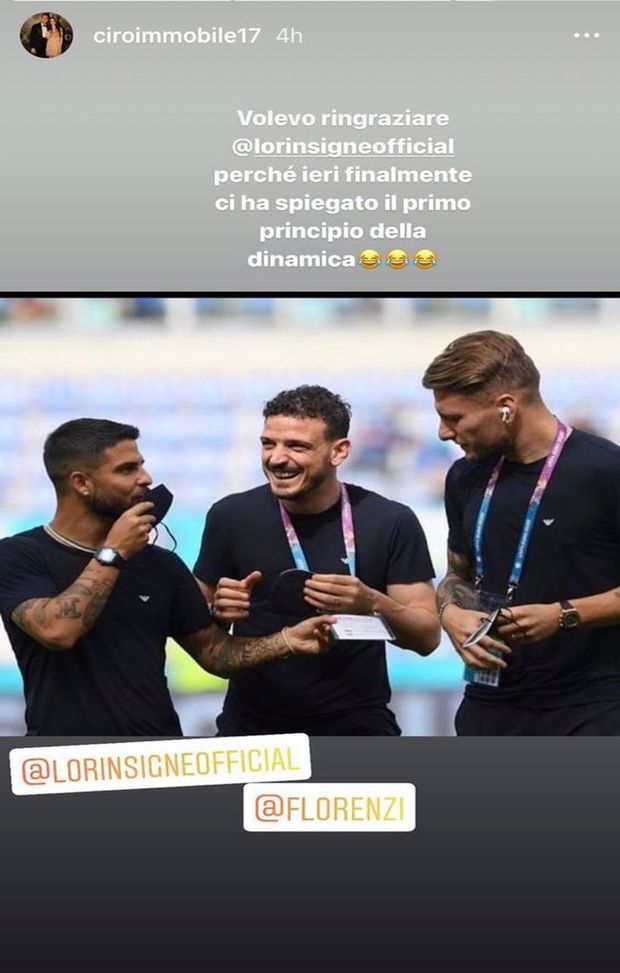 C'è un grande segreto di fondo dietro la macchina perfetta che, finora, sembra aver costruito Roberto Mancini: la Nazionale italiana è composta da un gruppo di amici. Gente che si vuole bene e che ha piacere di passare il tempo assieme. Un piacere vero, che diventa riso, poi ilarità, poi goliardia. Sono Ciro Immobile e Lorenzo Insigne i protagonisti in questo senso (oltre che sul campo). Gli attaccanti campani sono sempre al centro dell'attenzione tra scherzi, siparietti e momenti tutti da ridere. Qualche ora fa il laziale ha pubblicato una storia su Instagram in cui prende in giro il compagno: "Volevo ringraziare Insigne perché ieri ci ha finalmente spiegato il primo principio della relatività".