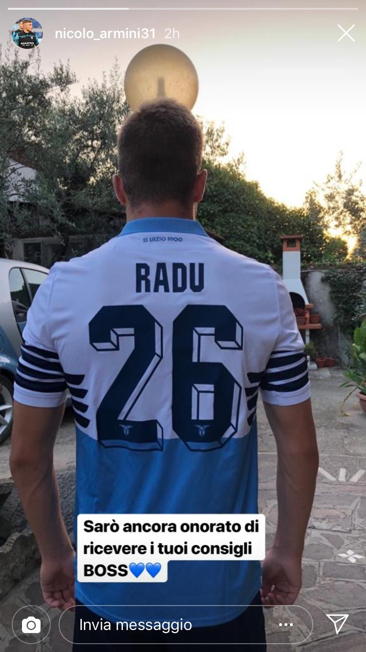 Il classe 2001 prima che calciatore è un vero tifoso del club capitolino, e per questo motivo la notizia del ritorno di Radu lo ha talmente allietato da pubblicare una Instagram story con il seguente messaggio: "Sarò ancora onorato di ricevere i tuoi consigli BOSS". Attestato di stima importante per il numero 26 biancoceleste.