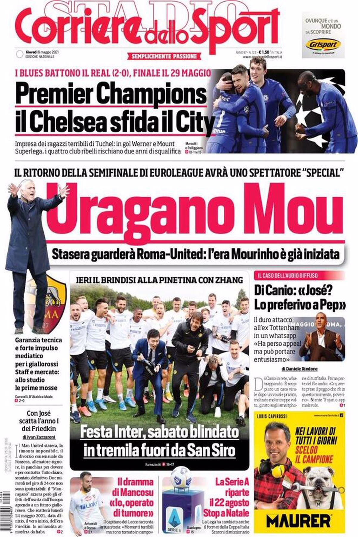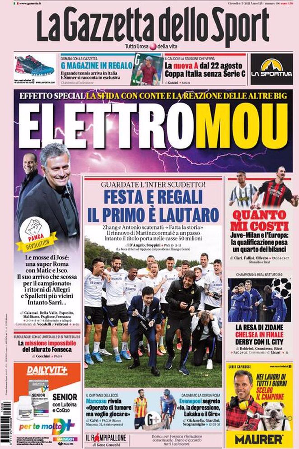 Le prime pagine dei principali quotidiani sportivi italiani di oggi, giovedì 6 maggio 2021