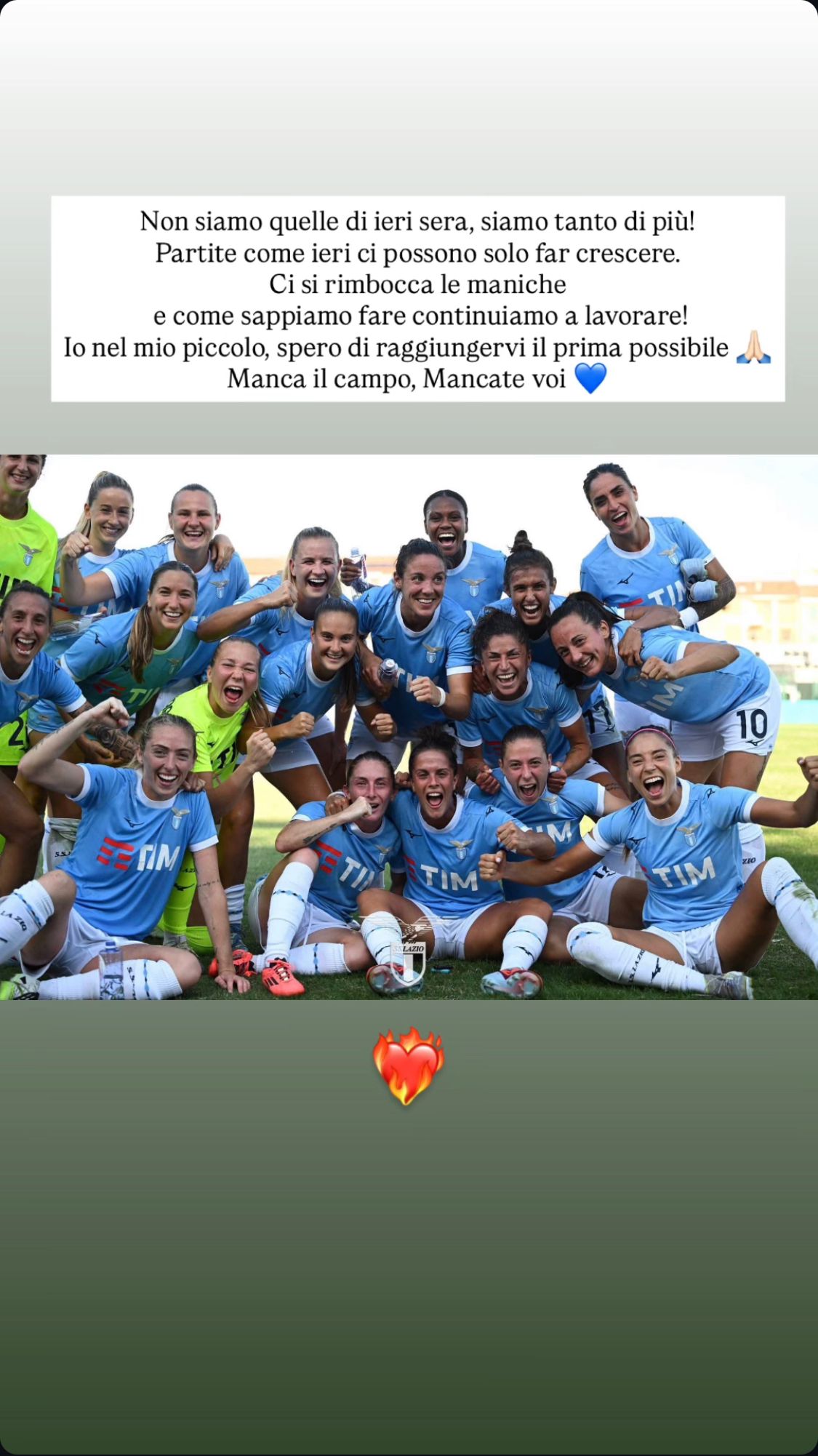 Con un bel messaggio condiviso sulle proprie stories Instagram, la centrocampista ha rincuorato le biancocelesti dopo la sconfitta nel derby