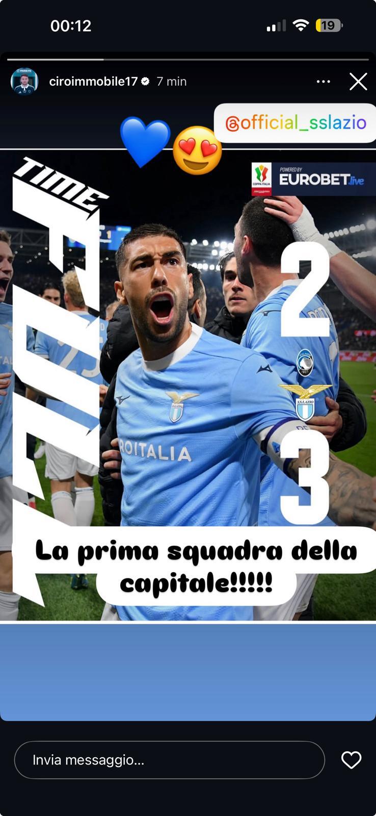 Tutta la gioia social di Ciro Immobile, attraverso le proprie Instagram stories, dopo il passaggio del turno della Lazio al Gewiss Stadium