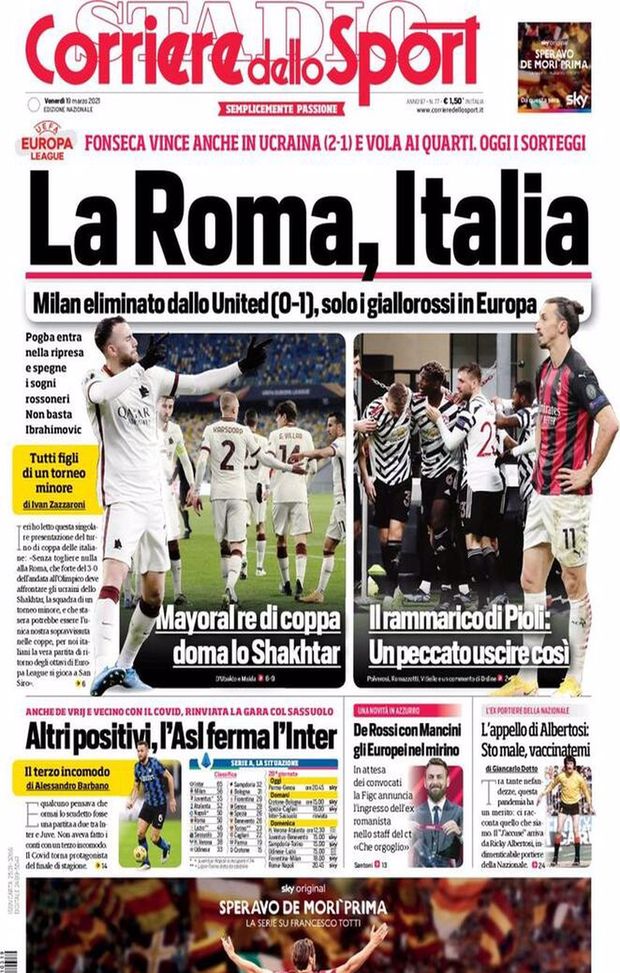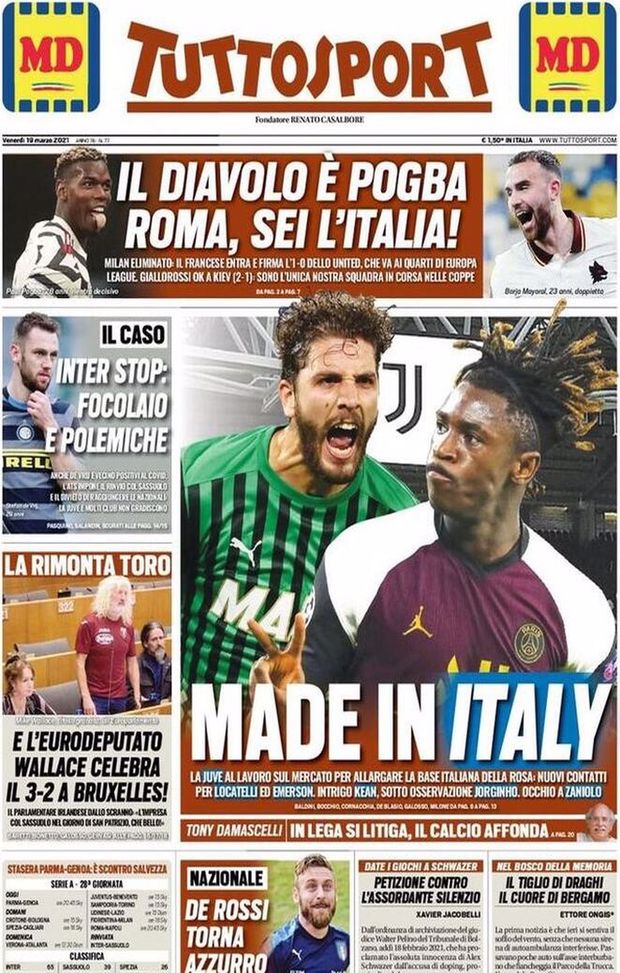 Le prime pagine dei maggiori quotidiani sportivi di oggi, venerdì 19 marzo