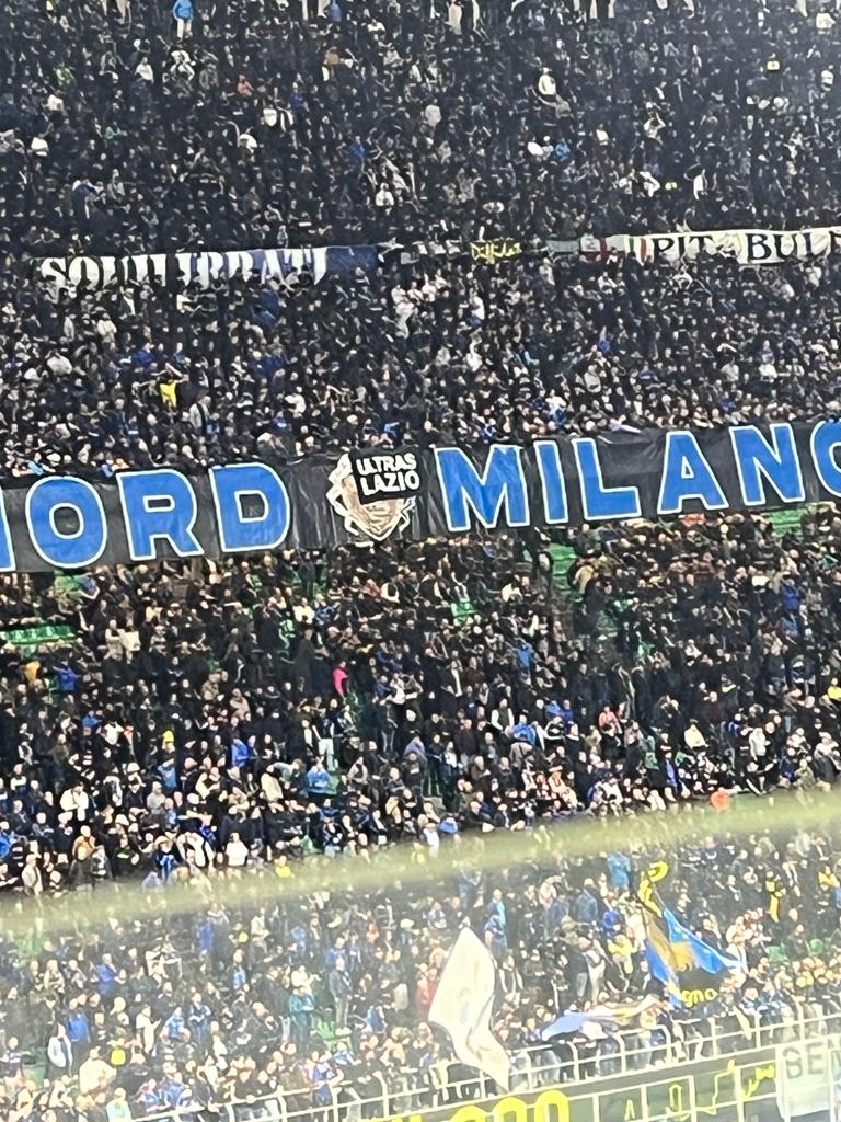 Ultras Lazio, in nome del gemellaggio, presenti a San Siro nella curva nerazzurra in occasione della sfida di campionato tra Inter e Roma
