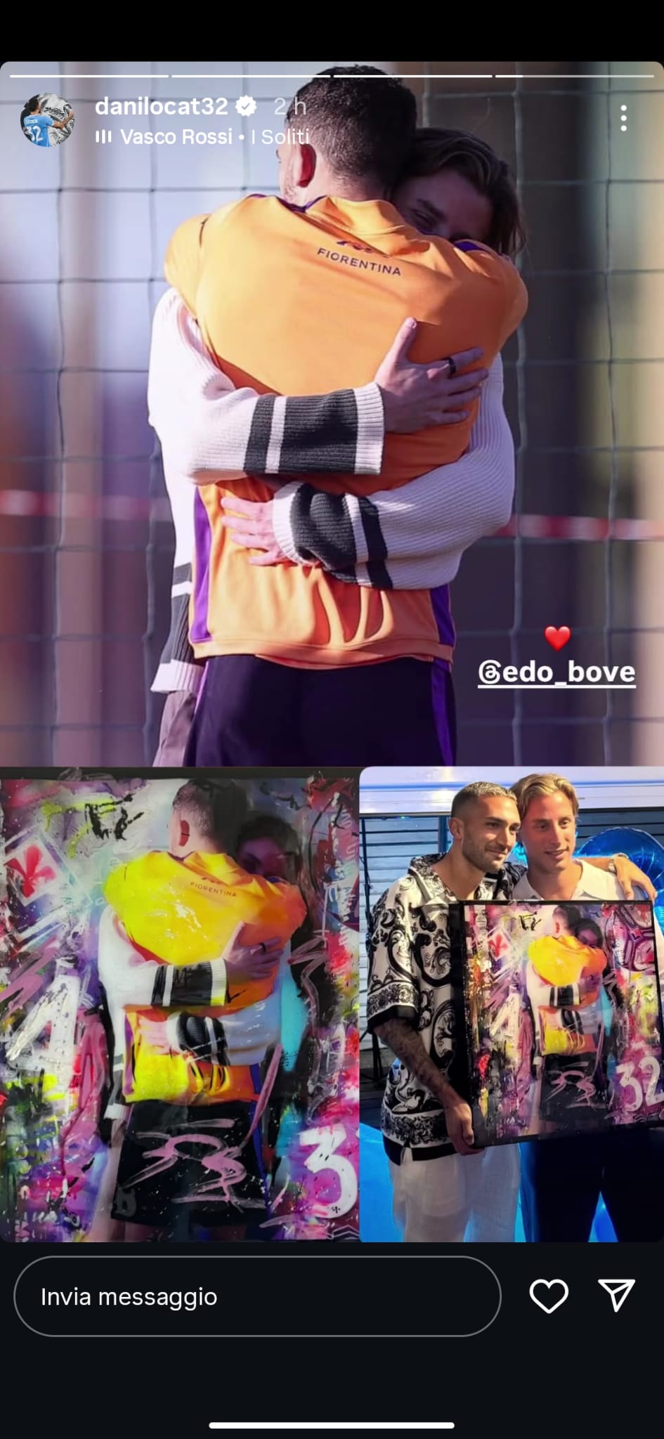 Danilo Cataldi ha festeggiato il suo trentunesimo compleanno nella giornata di ieri ed ha ricevuto un regalo speciale dal suo amico Edoardo Bove. I due hanno un forte legame: hanno militato entrambi nella Fiorentina nella scorsa stagione ed il malore dell'ex Roma ha rinforzato il rapporto. Danilo è stato il primo a soccorrerlo ed è rimasto al suo fianco in un periodo complicatissimo. Bove ha regalato al numero 32 della Lazio un quadro che ritrae un caloroso abbraccio tra i due. Un gesto che ha fatto emozionare Cataldi. Di seguito la foto pubblicata sulla storia Instagram del centrocampista biancoceleste: