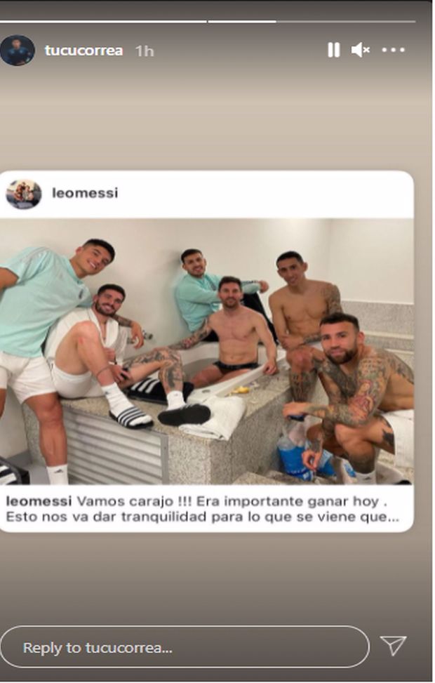 A fine gara attraverso i propri canali social, i calciatori impegnati nel match con l'Uruguay, hanno pubblicato alcune foto e il Tucu ha condiviso lo scatto di Lionel Messi dello spogliatoio dove sottolineava quanto sia stato importante trovare la vittoria. Il cammino dell'Argentina deve ancora decollare.