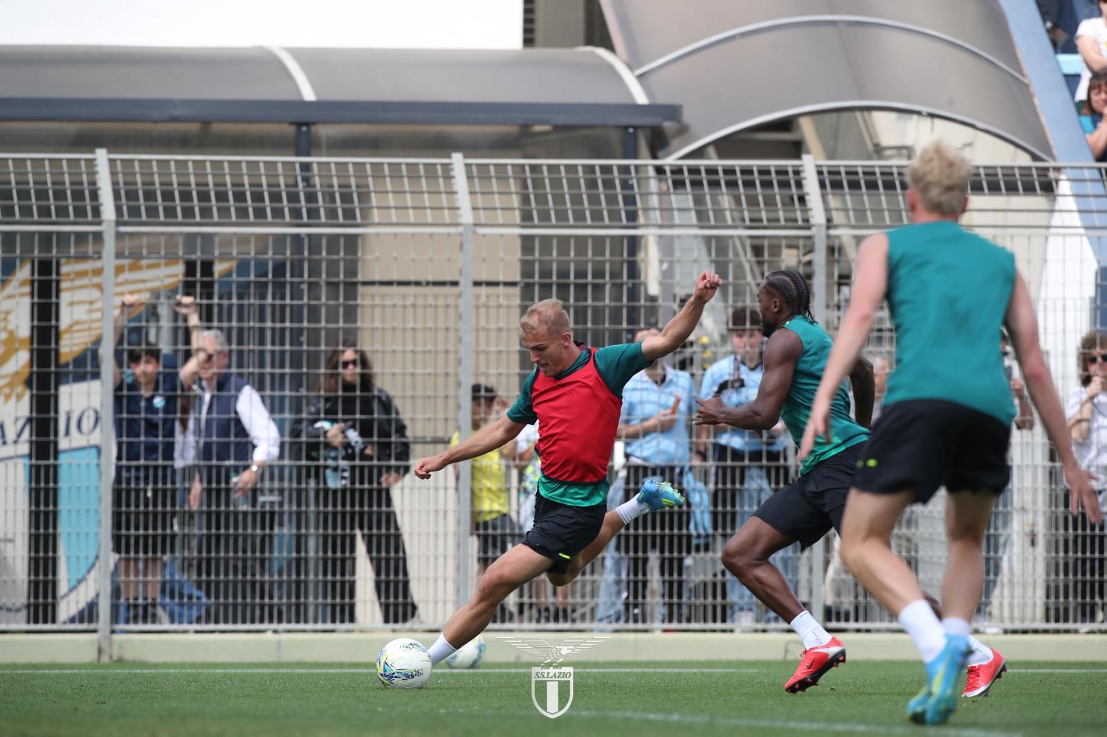 AGGIORNAMENTO ORE 11:05 -: Scambi e tanta intensità nel torello biancoceleste. Intanto, dagli spalti, i tifosi acclamano Cataldi, anche lui omaggiato con un lungo applauso e cori. Tifosi presenti oggi circa 600.