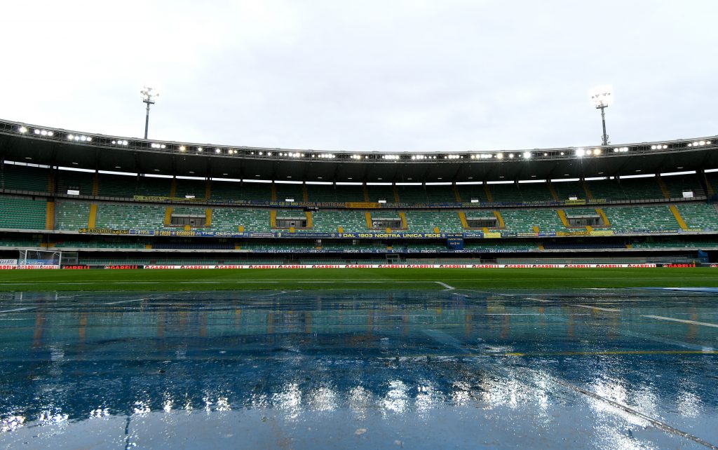 La Lazio è arrivata all'interno dell'impianto di gioco dell'Hellas Verona: le condizioni meteo non sono delle migliori