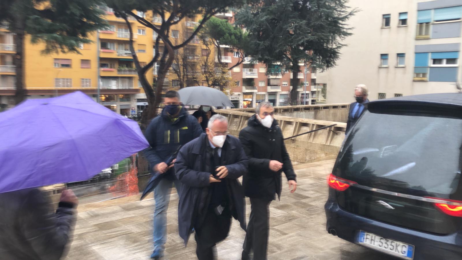 Ore 14:15 - Anche il patron biancoceleste Claudio Lotito ha raggiunto la parrocchia per dare l'ultimo saluto all'amico Arturo Diaconale.