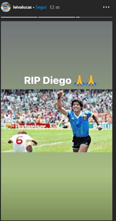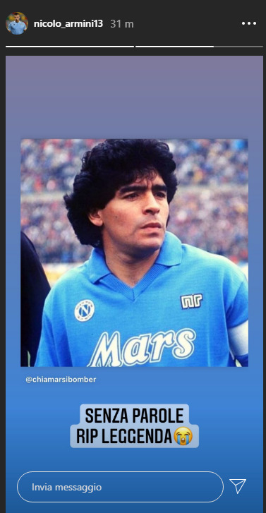 ROMA - La notizia della morte di Diego Armando Maradona non ha lasciato nessuno impassibile. Il più grande calciatore della storia di questo sport ci ha lasciato per arresto cardiaco all'età di 60 anni. I giocatori della Lazio hanno voluto omaggiare il campione argentino sui propri profili social, da Acerbi ("Ciao Diego") fino al giovane Armini ("Senza parole, rip leggenda").