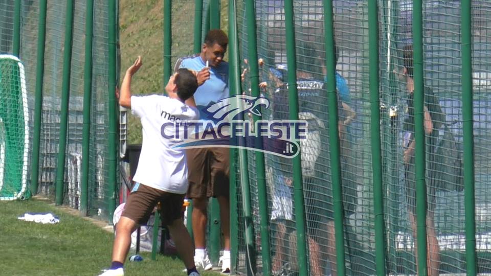 AURONZO - Anche Enrico Lotito, figlio del presidente,ha dovuto cedere al fascino di Ravel Morrison, ufficialmente un calciatore della Lazio da oggi. Mentre gli altri calciatori si erano recati al lago, Lotito Jr. ha parlottato con l'inglese assediato dai fan anche attraverso le grate. Mentre stava firmando un autografo su un foglietto è stato minacciato da una pallonata ed Enrico Lotito prontamente lo ha salvato da un colpo in faccia. A fine seduta poi di nuovo insieme i due, con l'aggiunta di Felipe Anderson, per un gioco coi palleggi a 2 tocchi.