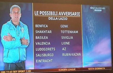 ROMA - Lazio seconda nel girone d'Europa League. Lunedì il sorteggio: ma quali squadra potrà incontrare l'undici biancoceleste? Nella schermata proposta da Sky, il tutto, viene analizzato. In basso, la foto. Cittaceleste.it