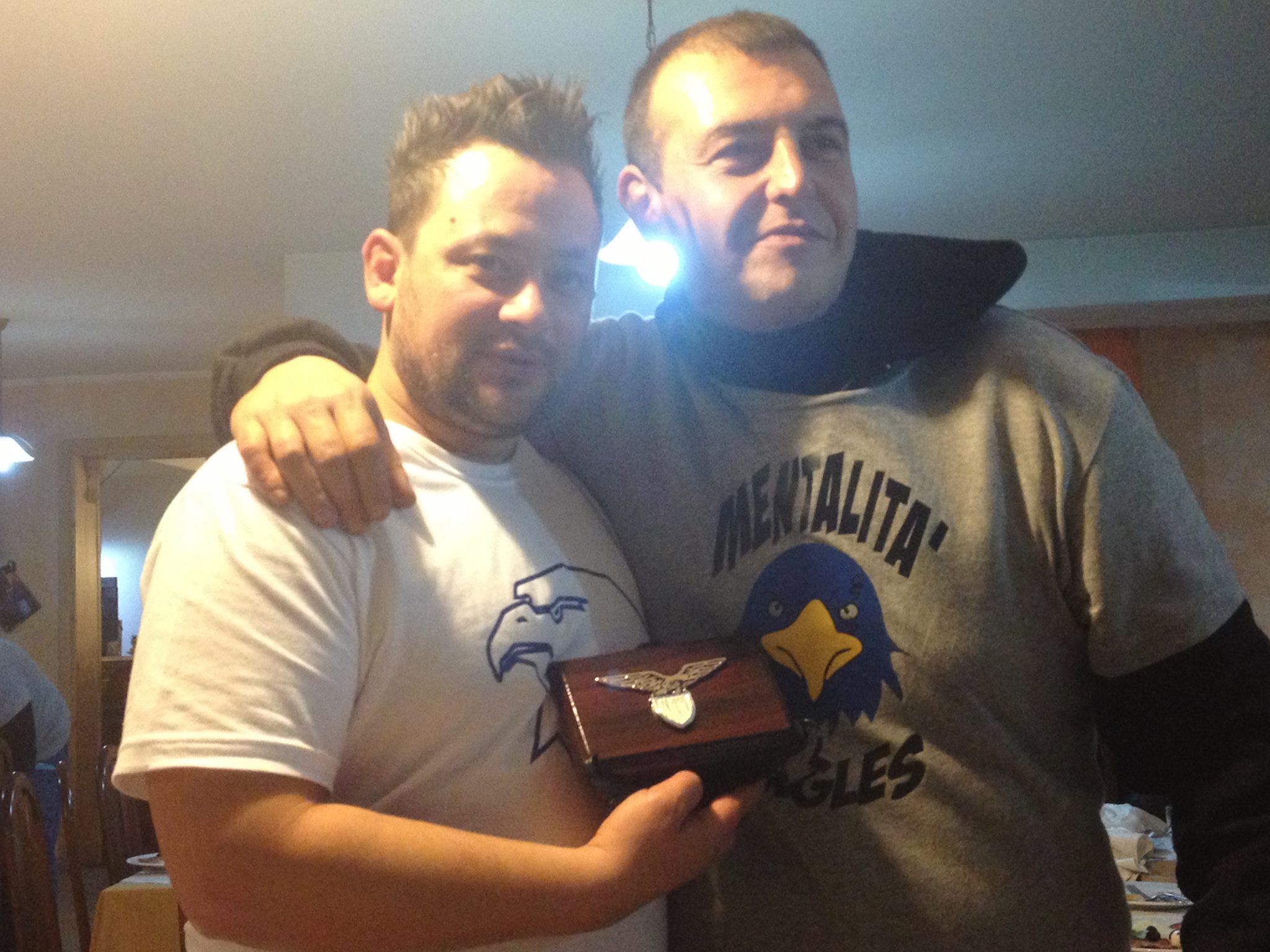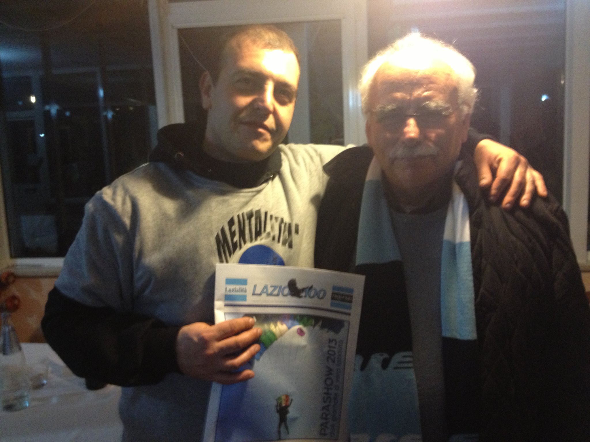ANAGNI - Nella splendida cornice di Anagni è andata in scena una bella cena all' insegna della Lazio, l'occasione giusta per incontrare vecchi e nuovi amici. Stefano e Marino, fondatori di Mentalità Eagles e Valerio, fondatore del Lazio club Colleferro, hanno creato un binomio indissolubile con un unico denominatore comune: la Lazio. In mezzo a tanti cori e un bel pezzo di pizza, non poteva mancare la presenza di Mario Notari, presidente della S.S. Lazio motociclismo, che ha fregiato Mentalità Eagles di una targa con il primo scudetto della Lazio, insieme a Dario Falchi, vice presidente della Lazio Burraco. E' stata anche una occasione per analizzare il momento della Lazio: "Prendessimo un giocatore sano - si inalbera un signore - questo è il nuovo parametro di Lotito!" Per sdrammatizzare il vino scorre a fiumi, accompagnato da una buona porzione di pizza che non guasta mai. In attesa di tempi migliori e che la Lazio torni a ricoprire le posizioni che merita.