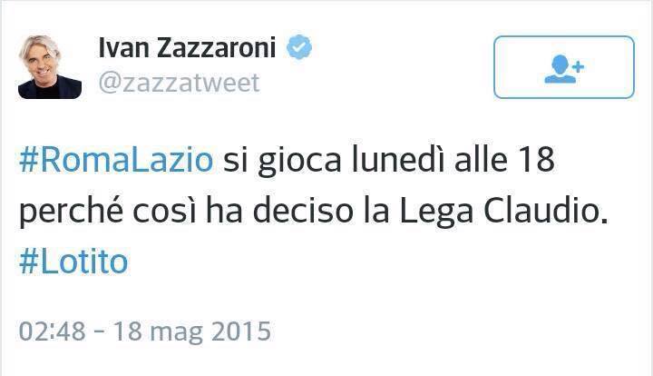ROMA - Il rinvio del Derby genera ironia anche su Twitter. Ivan Zazzaroni prende la palla al balzo e posta il seguente status: