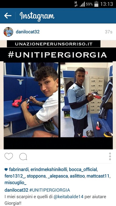 Uniti per Giorgia, la raccolta fondi continua. Ad aiutare la bambina affetta dalla sindrome di Berdon ci sono anche Danilo Cataldi e Keita Balde Diao. I due calciatori biancocelesti, infatti, hanno voluto donare i loro scarpini a scopo benefico; il centrocampista romano ha immortalato con uno scatto pubblicato su Instagram…