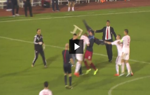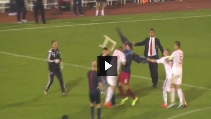 VIDEO INEDITO – Rissa Serbia-Albania, Cana picchiato da uno steward e scalciato da un tifoso all’uscita