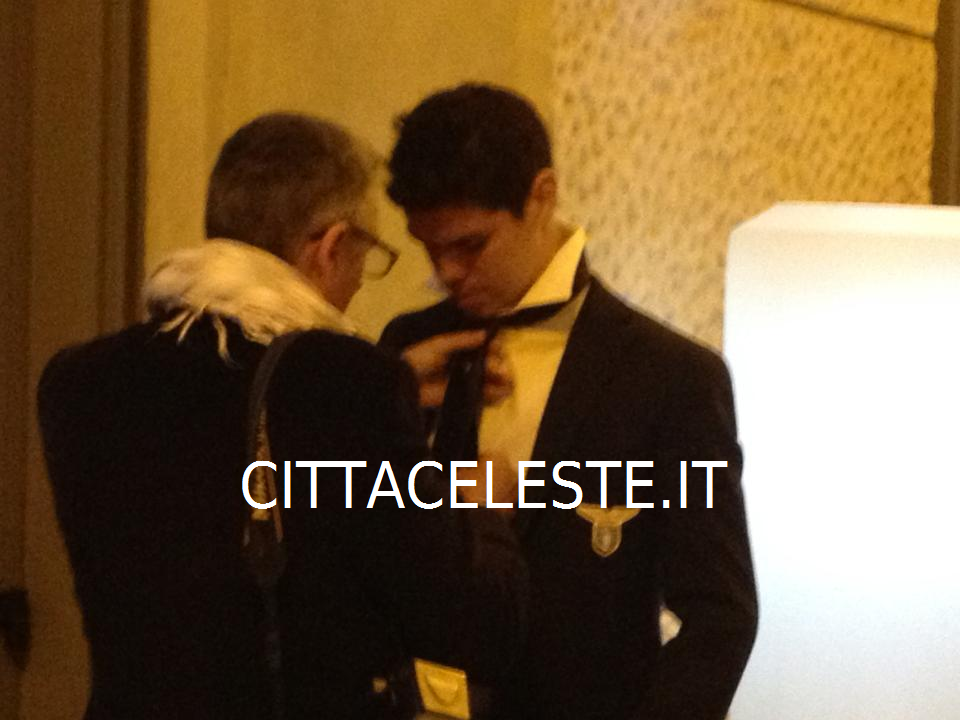 AGGIORNAMENTO ORE 20:24 - Il fotografo ufficiale della Lazio, Marco Rosi, aiuta Vinicius a mettersi la cravatta.