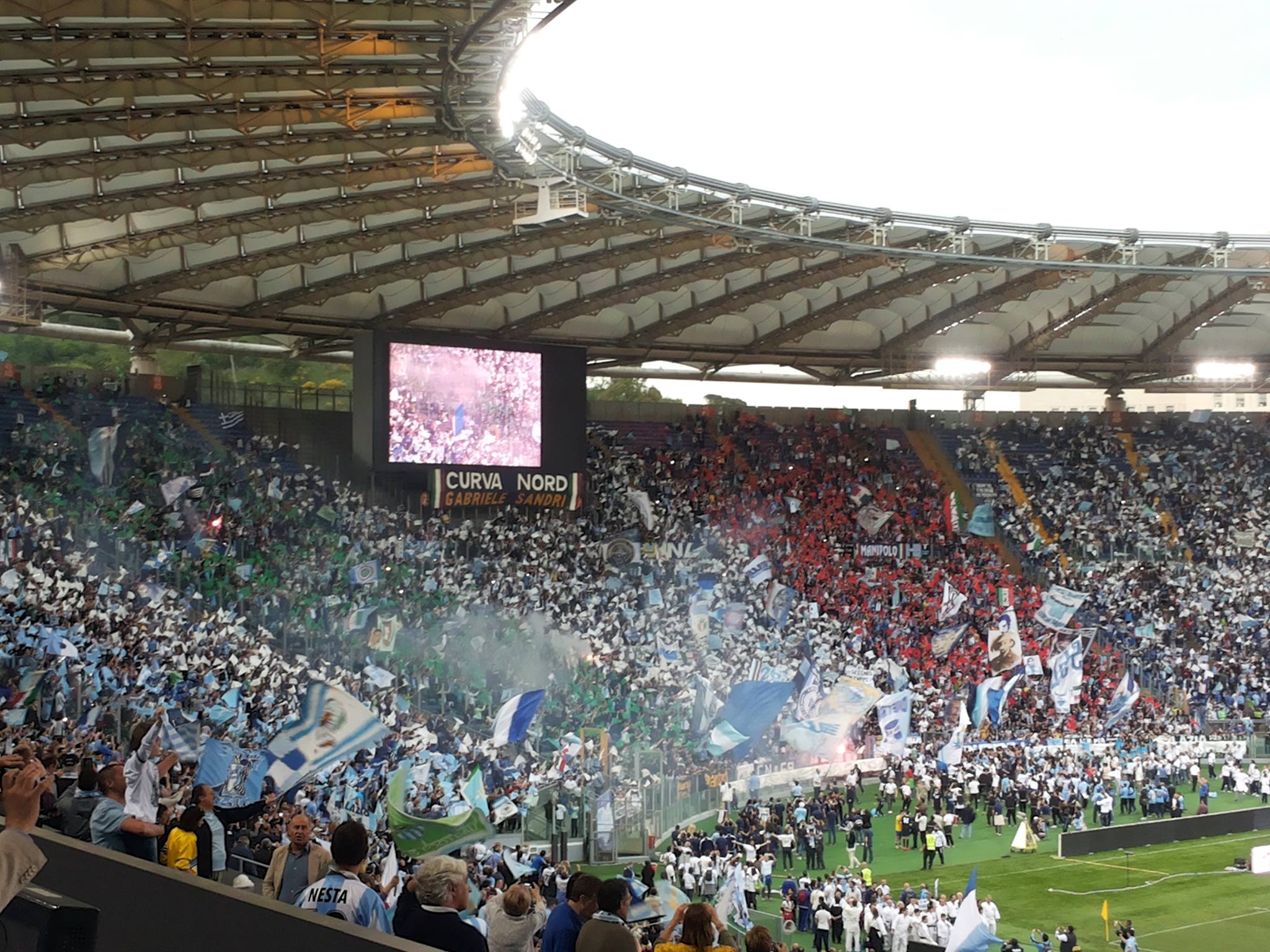 ORE 20.40 - Anche Delio Rossi acclamato dal pubblico: un video riporta le immagini della sua avventura biancoceleste. Poi telecamere e cori si spostano su Sandro Nesta