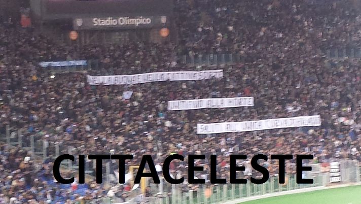 ROMA - Bel messaggio della Curva Nord che, attraverso tre striscioni, ha richiamato al gemellaggio con i tifosi interisti: "Nella buona e nella cattiva sorte, uniti fino alla morte. Saluti all'unica curva di Milano". Anche lo spicchio di tifosi...