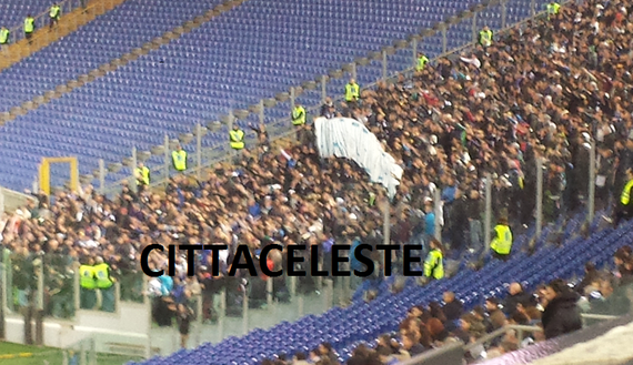 Anche lo spicchio di tifosi dell'Inter regala uno striscione per i gemellati biancocelesti: "AVANTI FRATELLI LAZIALI". In sottofondo il coro: "Gabriele uno di noi".