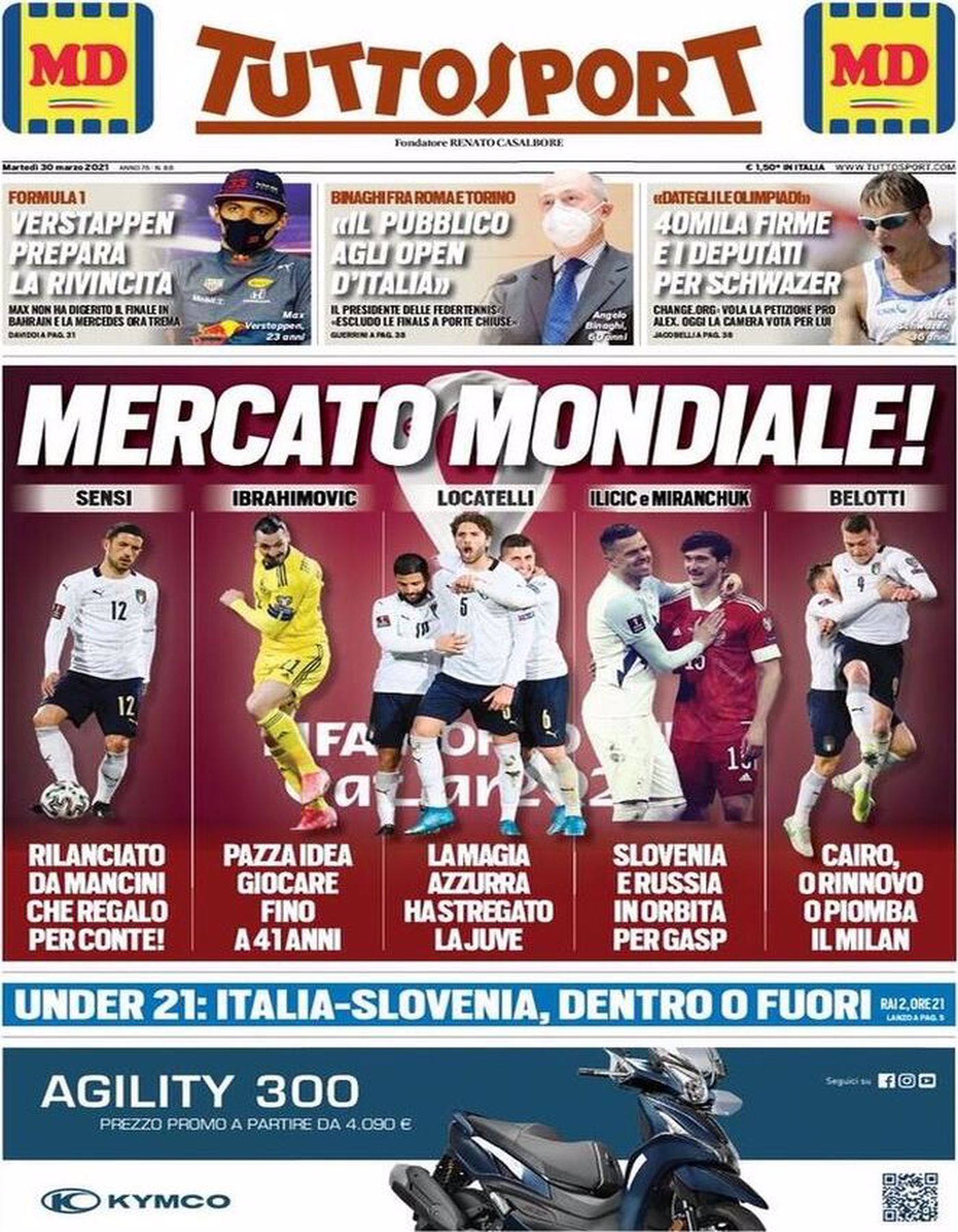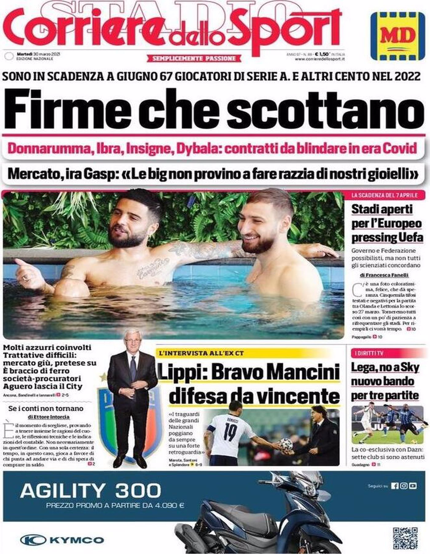 Le prime pagine dei quotidiani sportivi del 30 marzo 2021
