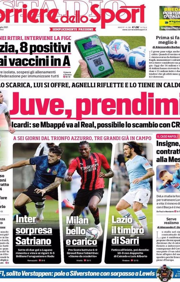 Le prime pagine dei principali quotidiani sportivi di oggi, domenica 18 luglio