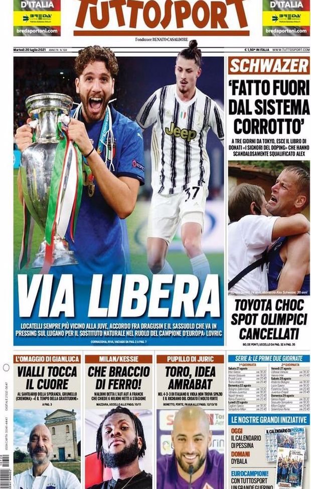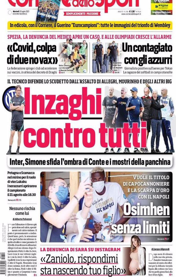 Le prime pagine dei principali quotidiani sportivi di oggi, 20 luglio 2021