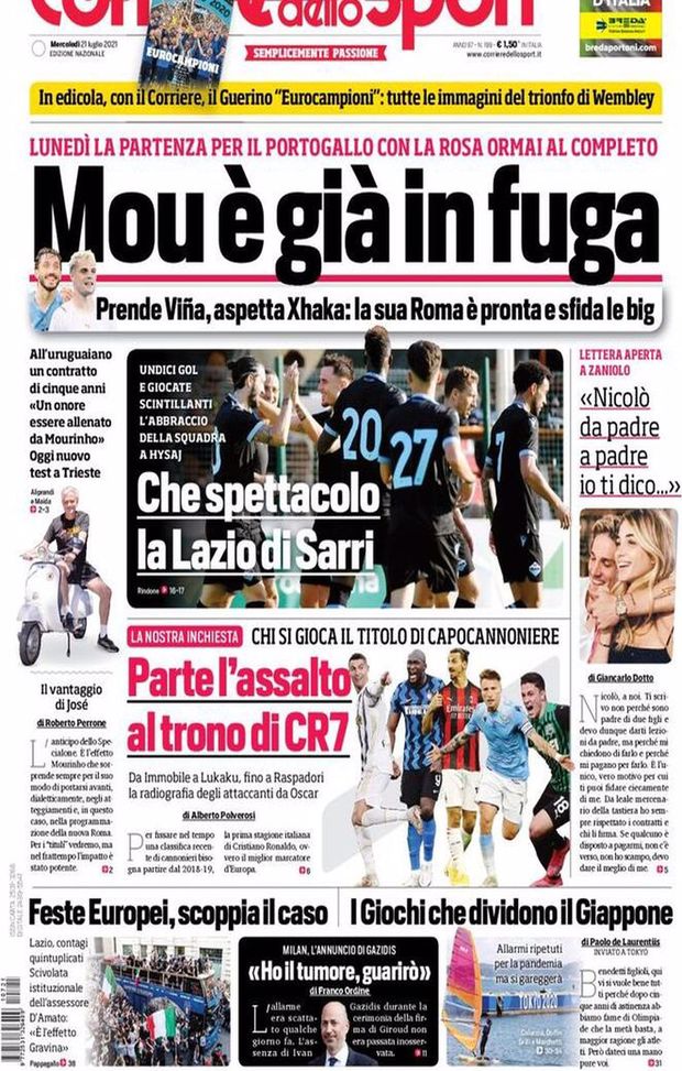 Le prime pagine dei principali quotidiani sportivi di oggi, 21 luglio 2021
