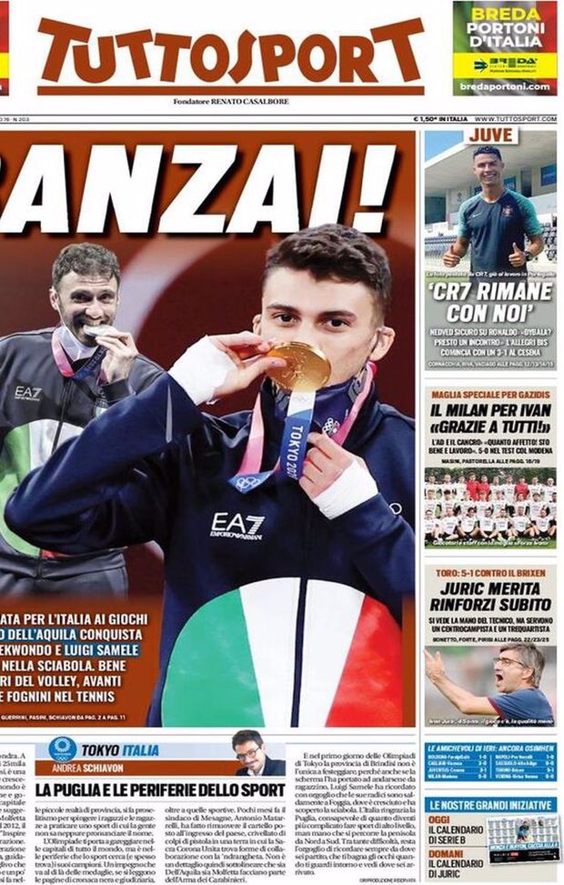 Le prime pagine dei principali quotidiani sportivi di oggi, domenica 25 luglio 2021