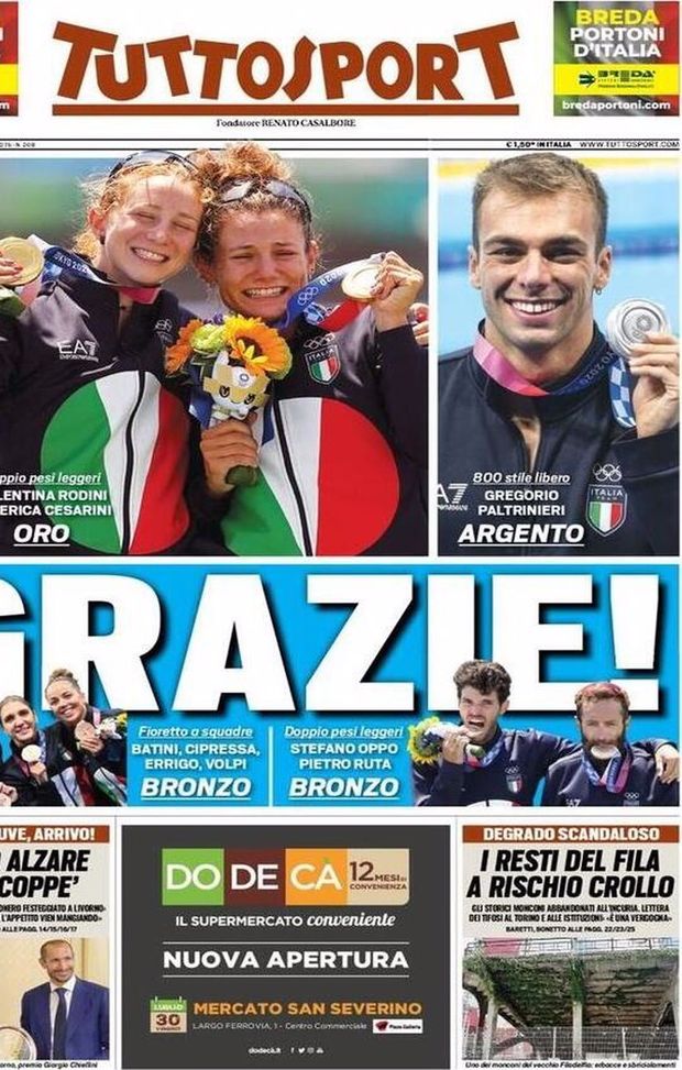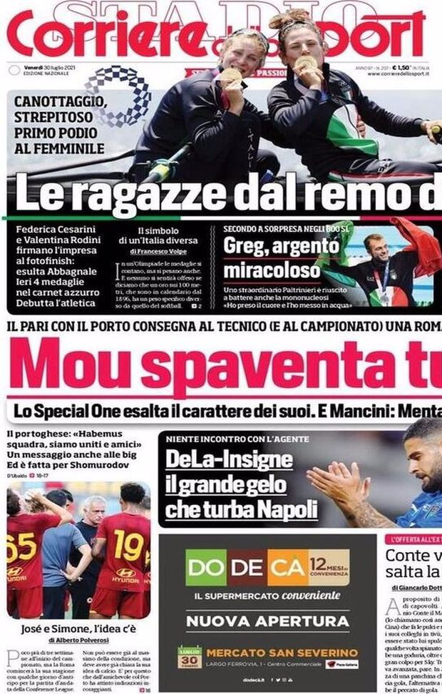 Le prime pagine dei principali quotidiani sportivi di oggi, venerdì 30 luglio 2021