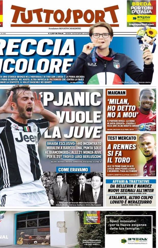 Le prime pagine dei principali quotidiani sportivi di oggi, sabato 31 luglio 2021