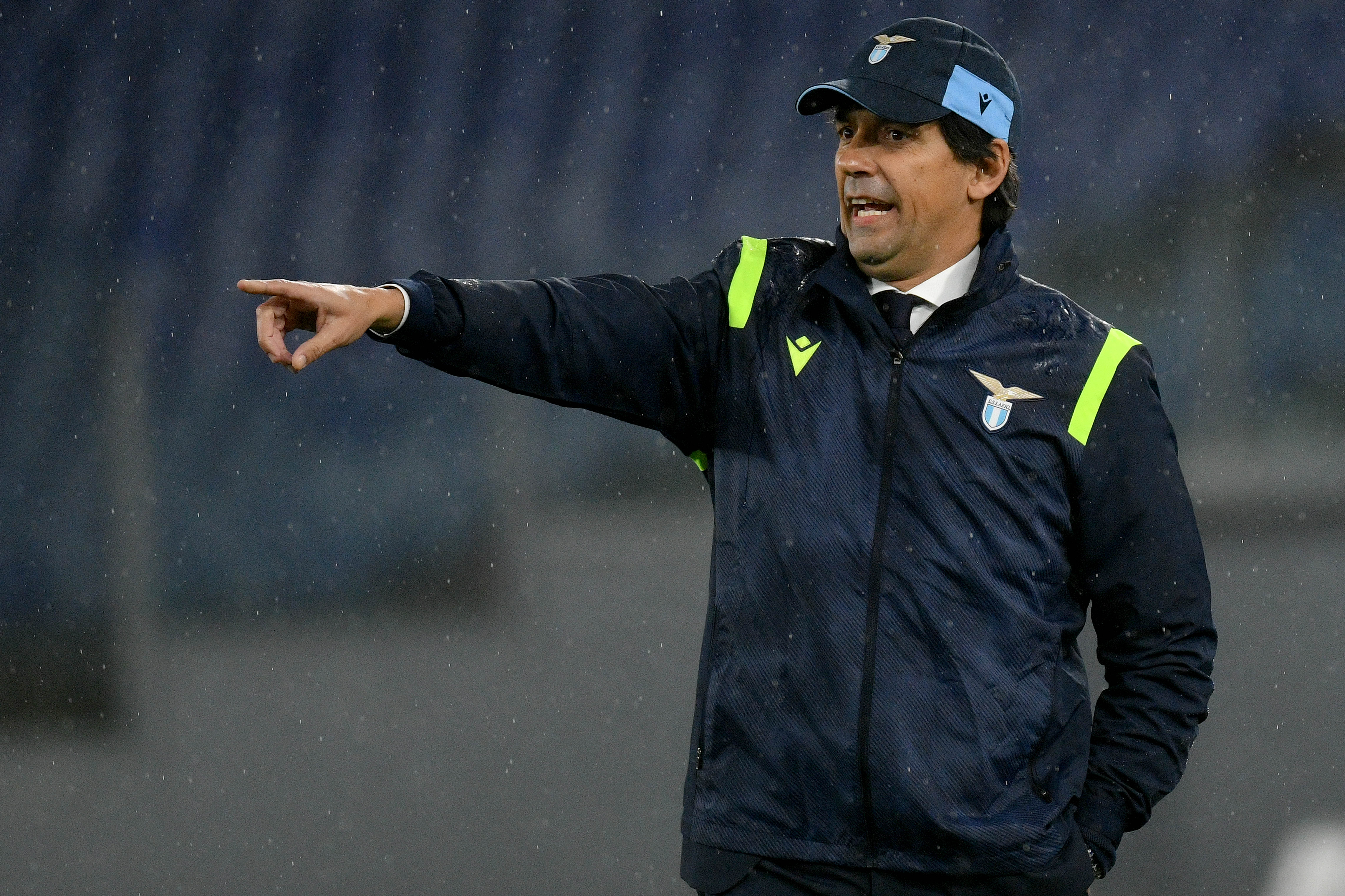 ROME, ITALY - FEBRUARY 07: SS Lazio head coach Simone Inzaghi reacts during the Serie A match between SS Lazio and Cagliari Calcio at Stadio Olimpico on February 07, 2021 in Rome, Italy. Sporting stadiums around Italy remain under strict restrictions due to the Coronavirus Pandemic as Government social distancing laws prohibit fans inside venues resulting in games being played behind closed doors. (Photo by Marco Rosi - SS Lazio/Getty Images)