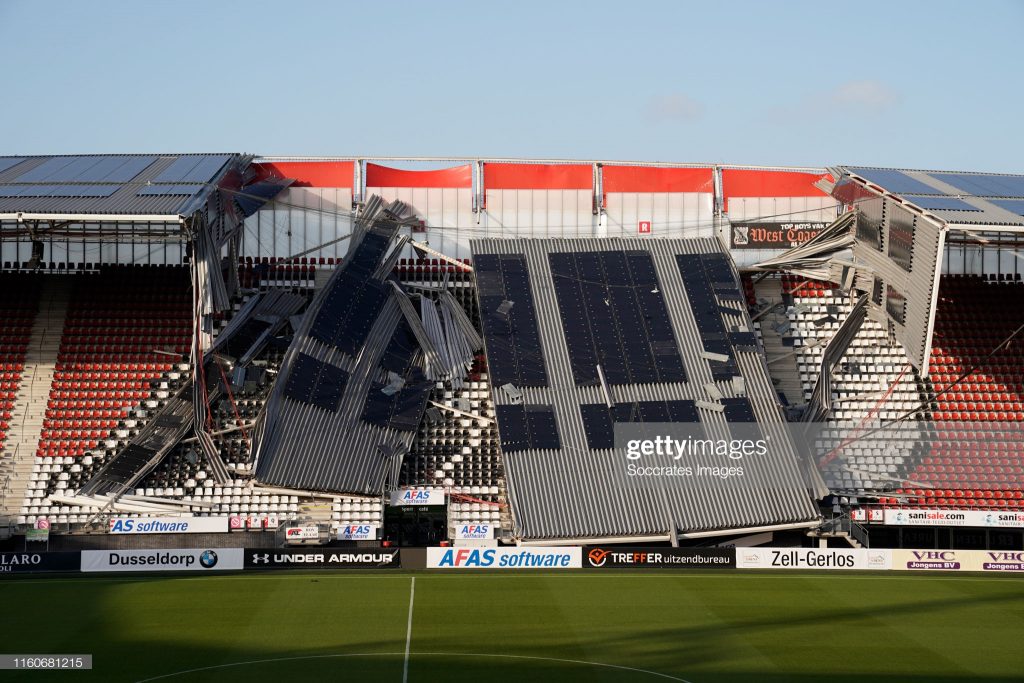 Il vento è devastante: crolla una parte dello stadio dell’Az Alkmaar